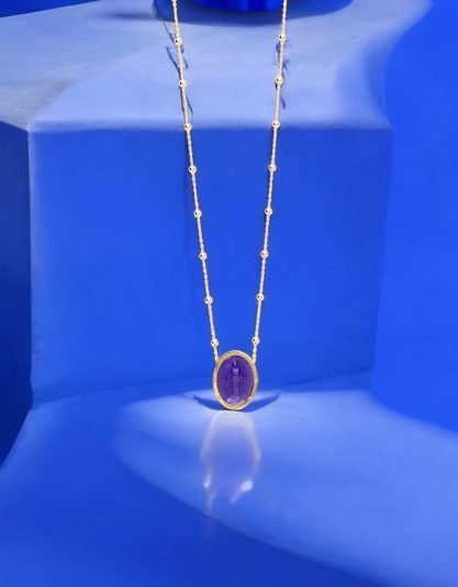 Oval Saints Pendant with Bezel Setting and 18k Gold Chain